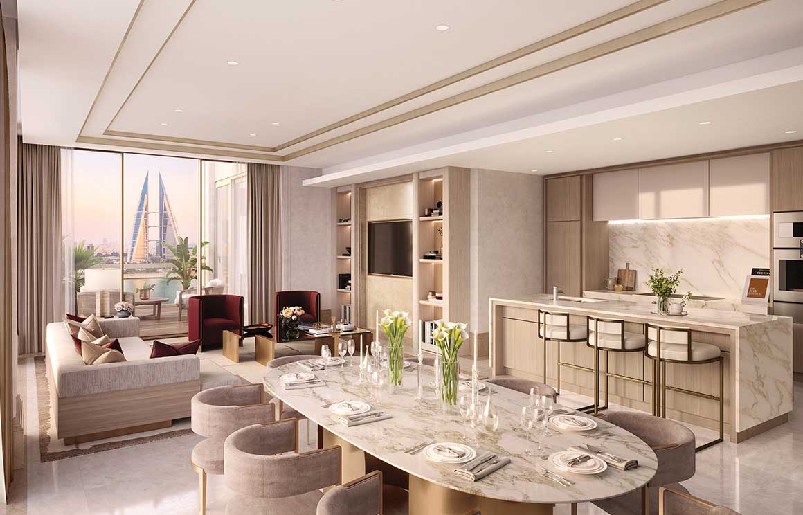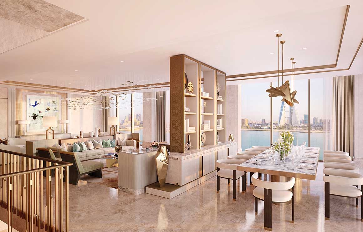 ولتعيد ابتكار مفهوم فخامة ورقيّ العيش في الشرق الأوسط، صّممت المساكن الخاصة فورسيزونز بتنوع فخم يشمل 98 شقةً، و8 دوبلكس، و6 بنتهاوس راقية. وهي قريبة من الكثير من الوجهات المميزة، حيث لا تحتاجون إلا رحلة قصيرة بالسيارة للوصول إلى مطار البحرين الدولي، أو جسر الملك فهد. وفضلاً عن هذا، فإنّ خليج البحرين عبارة عن أحدث مفهوم للحياة العصريّة المحاطة بالواجهات المائيّة والمعالم المعماريّة ذات الدلالات الرمزية. فبالتأكيد، لا يمكن أن يحصل المرء على مجموعة أفضل من مزايا ومواصفات مسكن المستقبل، أو ملاذٍ أمثل للابتعاد عن زخم الحياة في العطلات، أو محطة خاصة للاستجمام ما بين السفر.