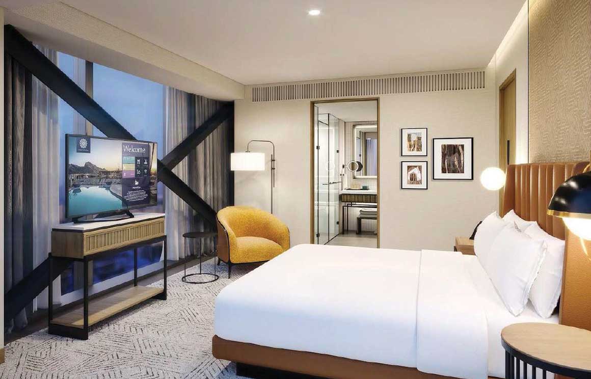 يقع الفندق على مساحة مبنيّة بقدر 31,134 متر مربع، ويضمّ مساحة مفتوحة بقدر 19,327 متر مربع، ويعلو 18 طابقاً مؤلفًا من 218 غرفة و38 جناح، بالإضافة إلى مرافق للرياضة والاستجمام، ومطاعم مختلفة.