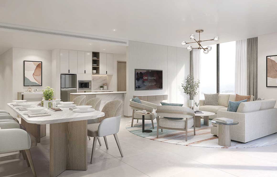 As part of an island community where health and wellbeing are the focus, Strata combines calm, reflective living with stimulating entertainment and recreation. This premium canalfacing residential offers breath-taking views for many of the apartments. Its long, sweeping balconies and canopies create a gentle, yet dynamic structure that captures the eye. The ninestorey building offers one- to four-bedroom configurations and comprises a total built-up area of 33,620 sqm. On the canal side, on the boardwalk, the building’s lower-ground level has a dedicated 665 sqm space for retail outlets, such as restaurants, cafés and convenience stores. The recreation level on the ninth floor houses the rooftop terrace and outdoor areas, with stunning views and exquisite facilities for residents’ leisure activities and social events.